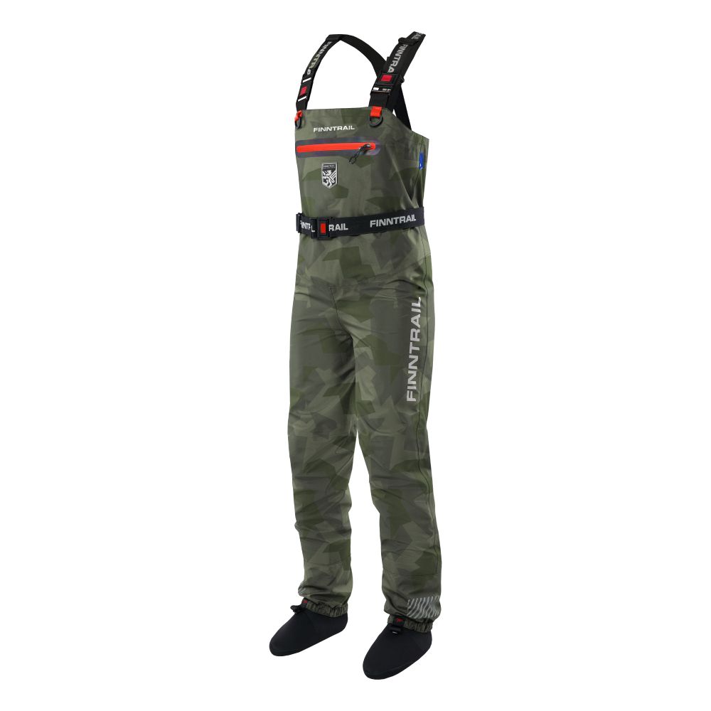 Новая модель женских вейдерсов, сделанная с учетом всех особенностей женской фигуры, для максимально удобной и красивой посадки по фигуре. Имеет адаптированный крой и размеры. Колени имеют 3D форму и не ограничивают в подвижности. Нижняя часть вейдерсов выполнена с минимальным количеством швов из прочной четырехслойной ткани с мембраной «HARD-TEX». Вейдерсы оснащены двумя карманами с защитой от воды, анатомическим кроем, D-образными петлями, петлями для просушки, эластичными подтяжками и ремнем с логотипами Finntrail на замке YKK.