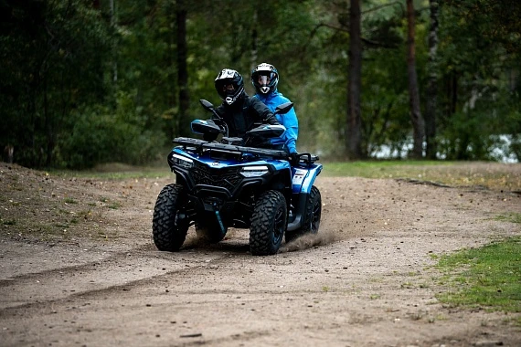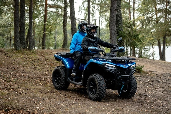 Вариатор CVTECH (Канада), электрический усилитель руля (EPS), стальные изогнутые рычаги подвески, улучшенные амортизаторы с прогрессивной пружиной, полностью светодиодная оптика, 5” TFT приборная панель, зеркала заднего вида, двухместное сиденье со спинкой для пассажира, багажные площадки с быстросъемными креплениями и повышенной грузоподъемностью, передний стальной бампер, 12″ алюминиевые колесные диски, 25″ резина с универсальным рисунком протектора, электрическая лебедка 3000 LBS, алюминиевые упоры для ног водителя и пассажира, аккумулятор повышенной емкости (30 Ач), электрическая розетка 12V, розетка USB, задний «бардачок» объемом 10.5 л, съемный фаркоп