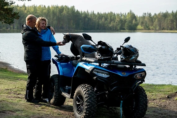 Вариатор CVTECH (Канада), электрический усилитель руля (EPS), стальные изогнутые рычаги подвески, улучшенные амортизаторы с прогрессивной пружиной, полностью светодиодная оптика, 5” TFT приборная панель, зеркала заднего вида, двухместное сиденье со спинкой для пассажира, багажные площадки с быстросъемными креплениями и повышенной грузоподъемностью, передний стальной бампер, 12″ алюминиевые колесные диски, 25″ резина с универсальным рисунком протектора, электрическая лебедка 3000 LBS, алюминиевые упоры для ног водителя и пассажира, аккумулятор повышенной емкости (30 Ач), электрическая розетка 12V, розетка USB, задний «бардачок» объемом 10.5 л, съемный фаркоп